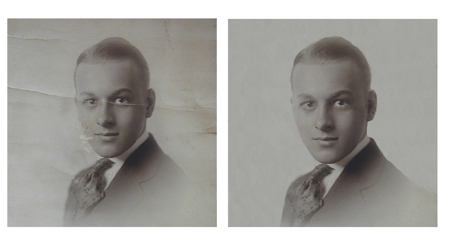 This is my wife's Great Uncle Stanley (ca 1913), the photo I mentioned on the homepage that my mother in law wanted restored. I used the clone tool in Photoshop with certain opacities to do most of the repair.